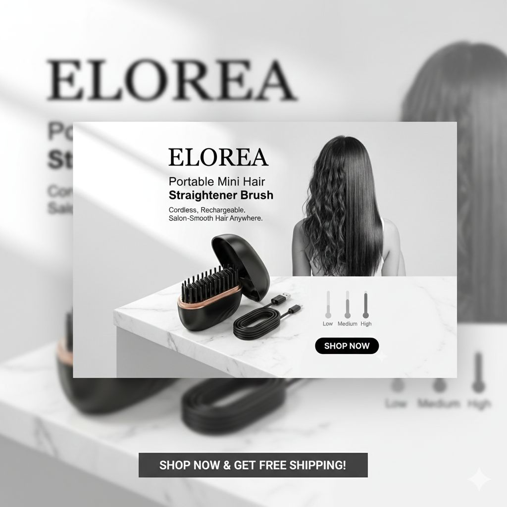 Portable Mini Hair Straightener Brush – Cordless, Rechargeable, 3 Temperature Levels